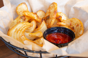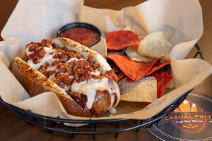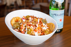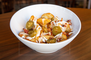 Crispy craft beer-battered thick cut curly fries loaded with a variety of toppings, just choose your style. Substitute warm tortilla chips upon request.